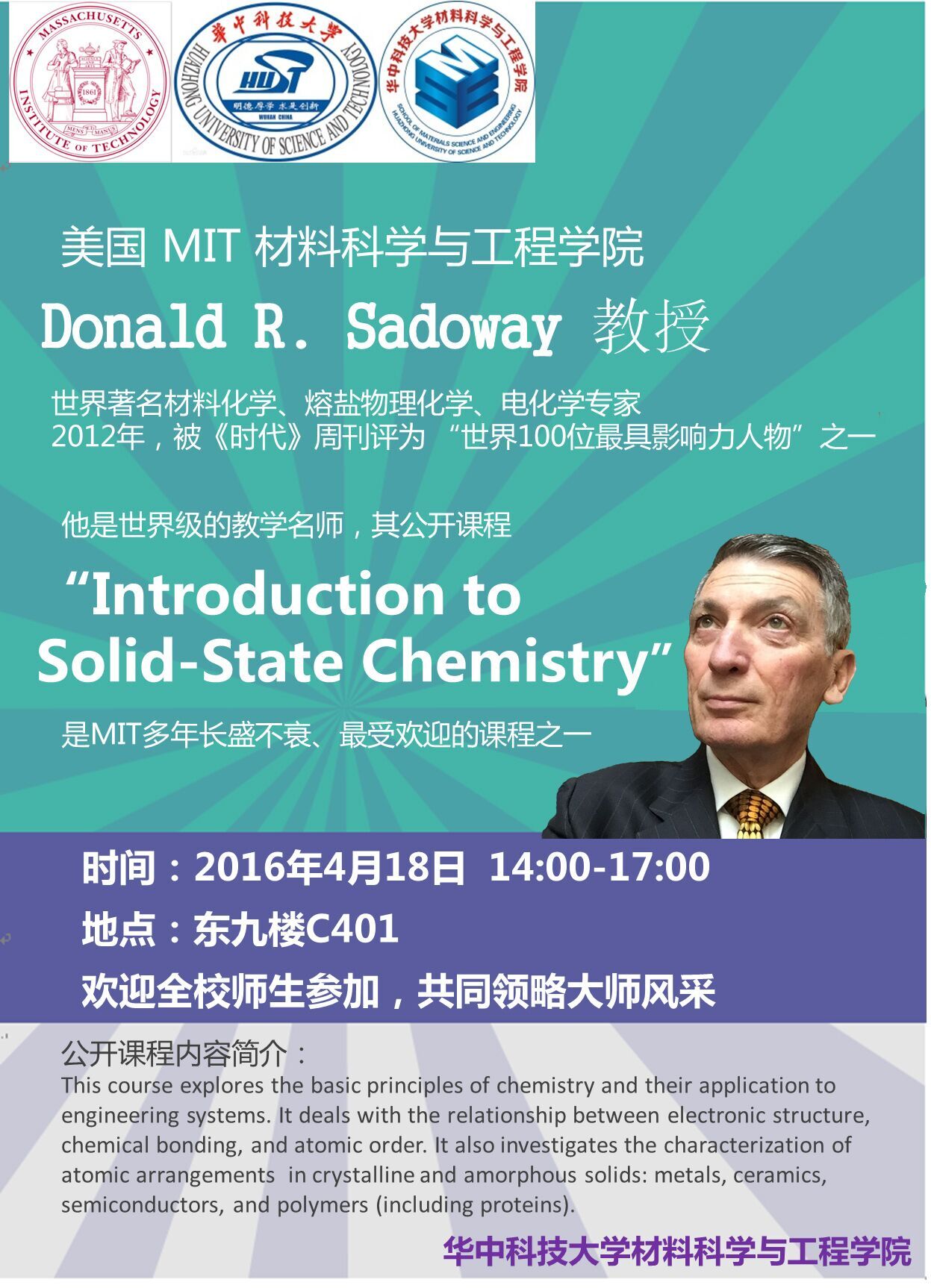 嘉宾介绍:Donald R. Sadoway,美国MIT材料工程98堂教授,世界著名材料化学、熔盐物理化学、电化学专家。2012年,被《时代》周刊评为 “世界100位最具影响力人物”之一。他是世界级的教学名师,其公开课程 “Introduction to Solid-State Chemistry” 是MIT多年长盛不衰、最受欢迎的课程之一。