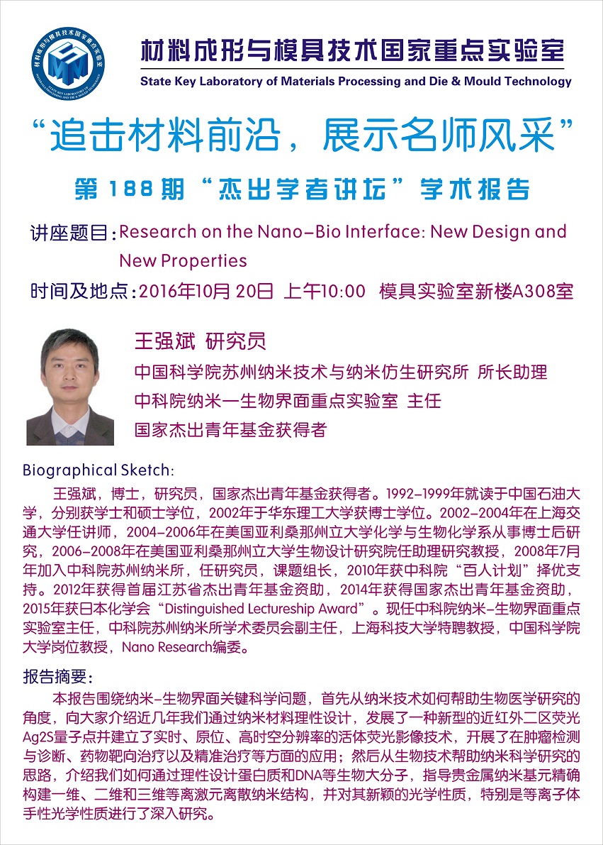 【2016年10月20日】第188期“杰出学者讲坛”学术报告
