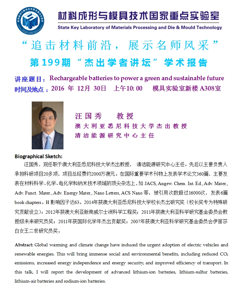 【2016年12月30日】第199期“杰出学者讲坛”学术报告