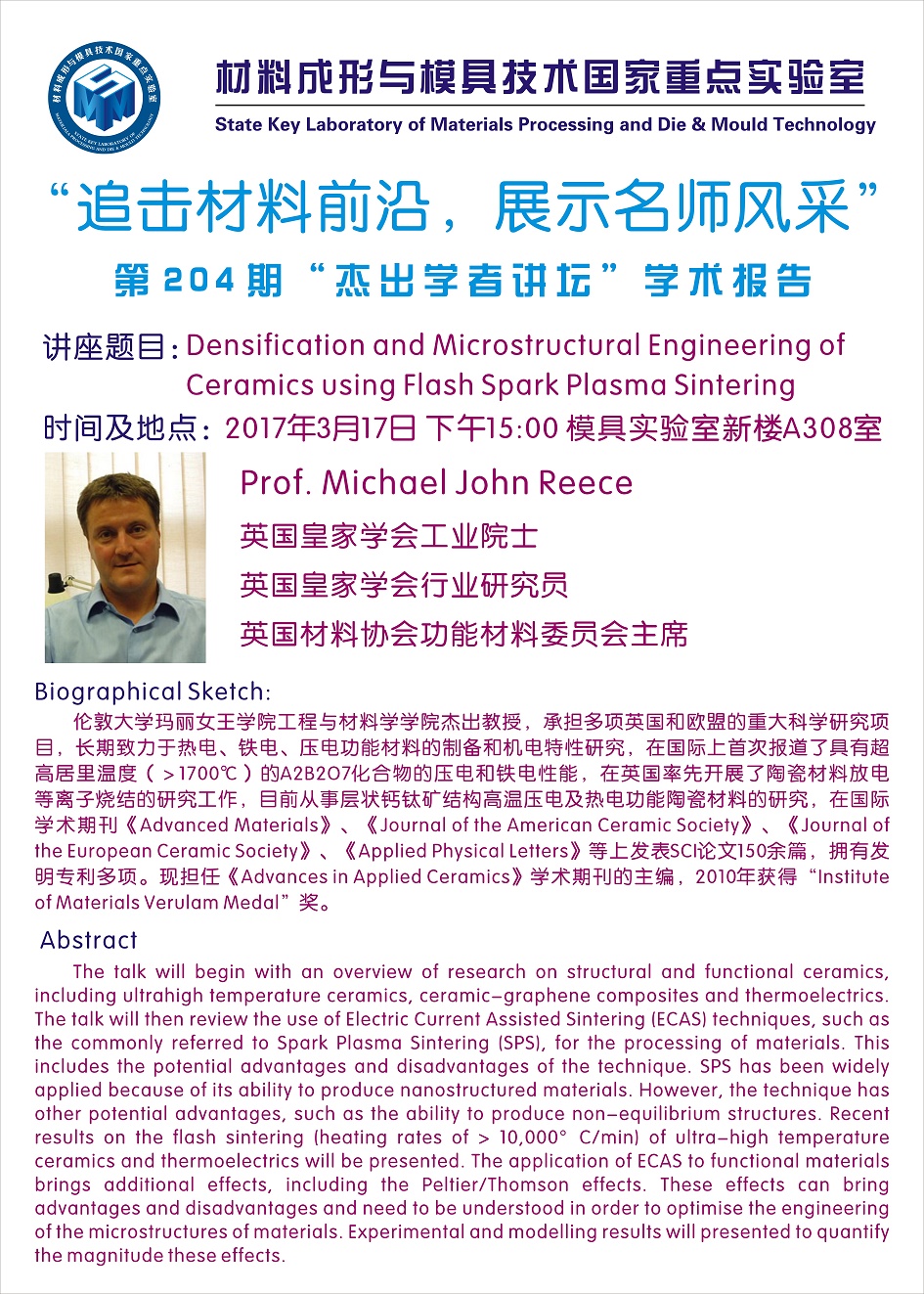 【2017年03月17日】第204期“杰出学者讲坛”学术报告