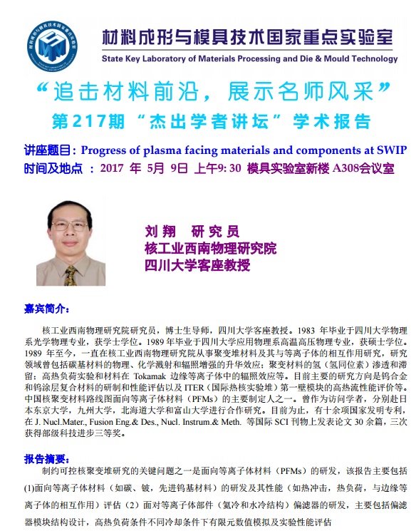 【2017年05月09日】第217期“杰出学者讲坛”学术报告