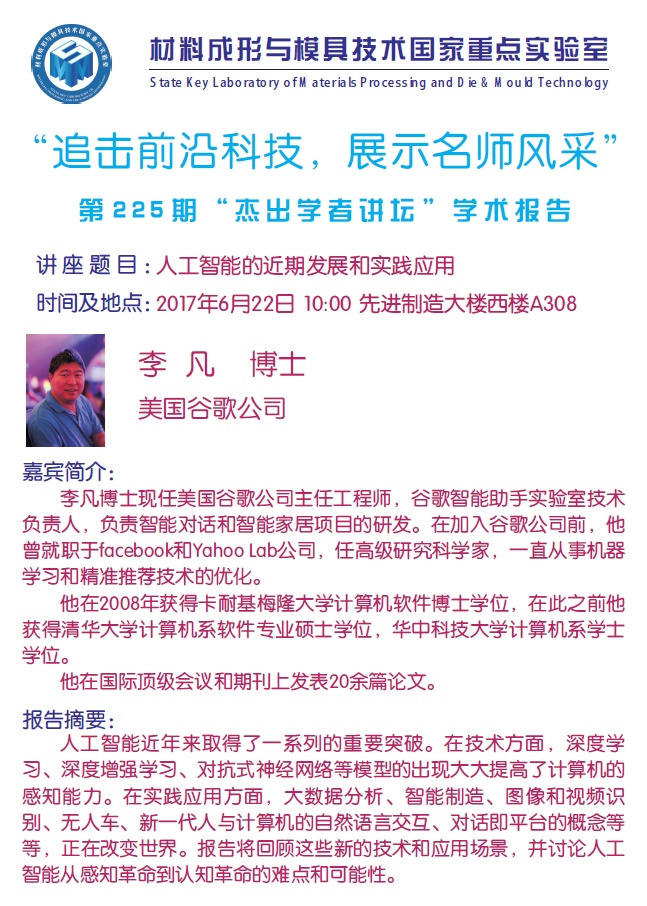 【2017年06月22日】第225期“杰出学者讲坛”学术报告