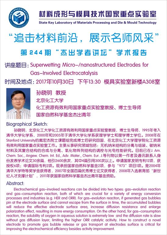 【2017年10月30日】第244期“杰出学者讲坛”学术报告
