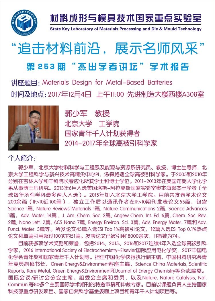【2017年12月7日】第255期“杰出学者讲坛”学术报告