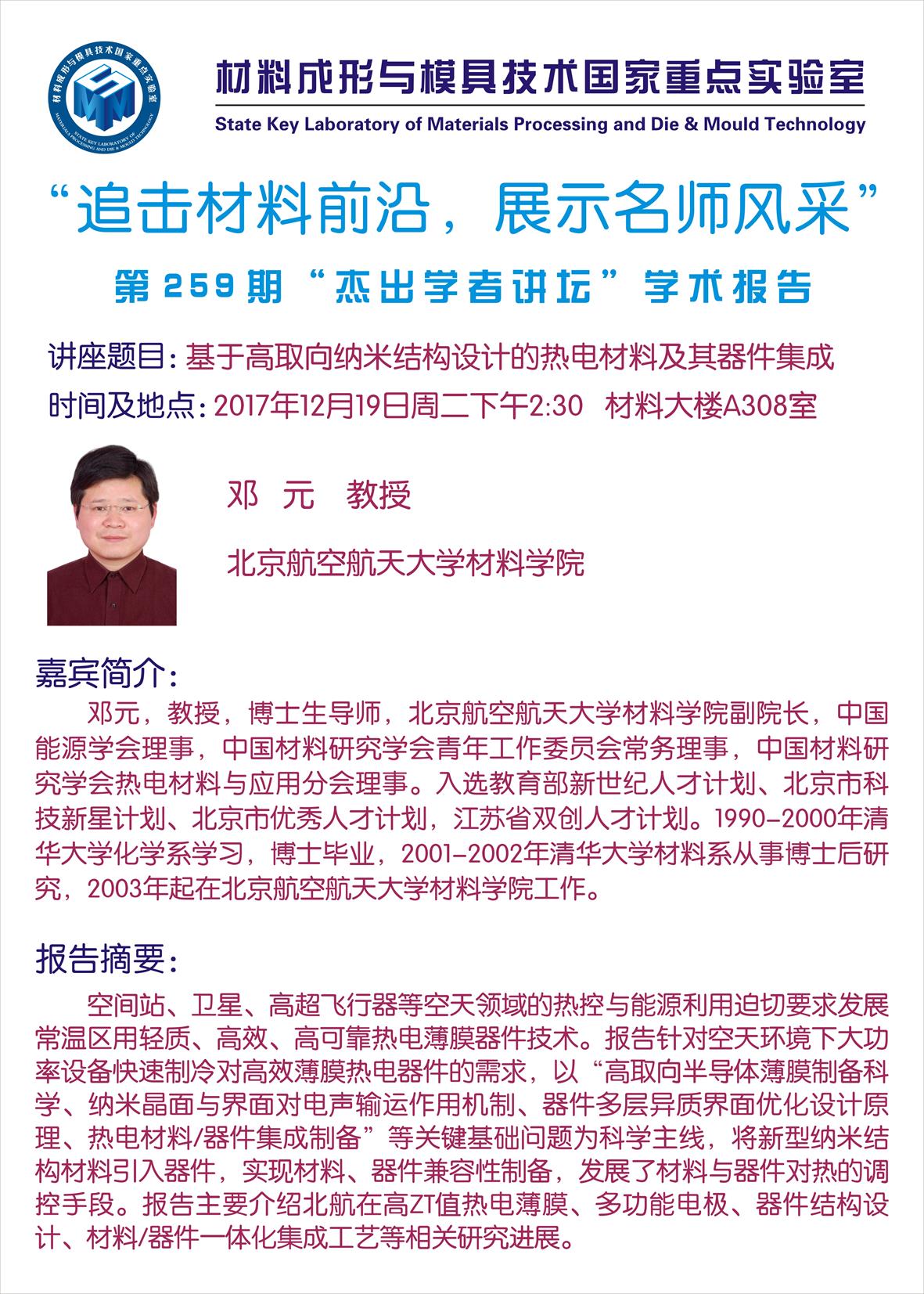 【2017年12月26日】第260期“杰出学者讲坛”学术报告