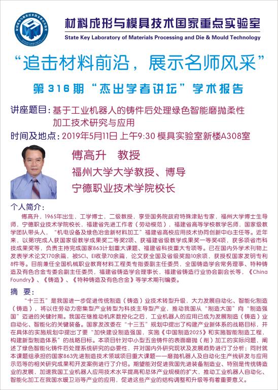 第316期杰出学者讲坛——福州大学教授傅高升