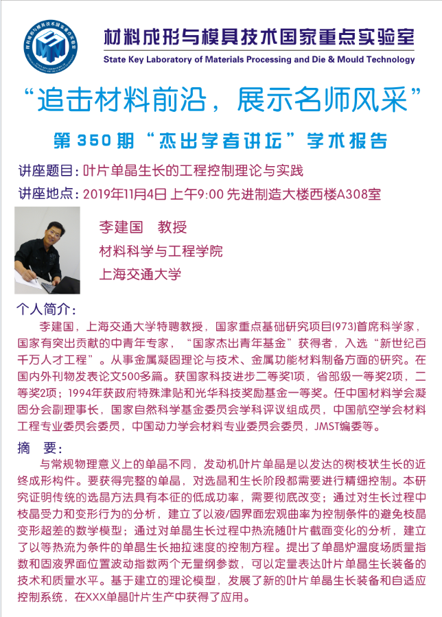 第350期期杰出学者讲坛——上海交通大学教授李建国