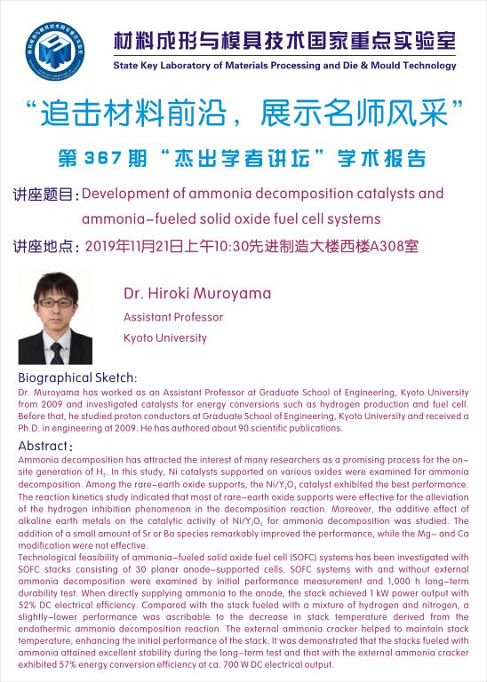 第367期杰出学者讲坛——Dr. Hiroki Muroyama from Kyoto University