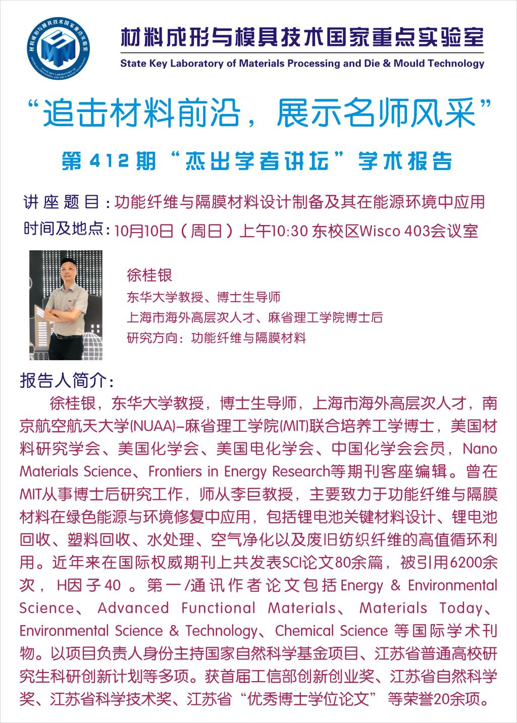 2021年10月15日“杰出学者”讲坛:生物质基塑料材料的制备与循环利用
