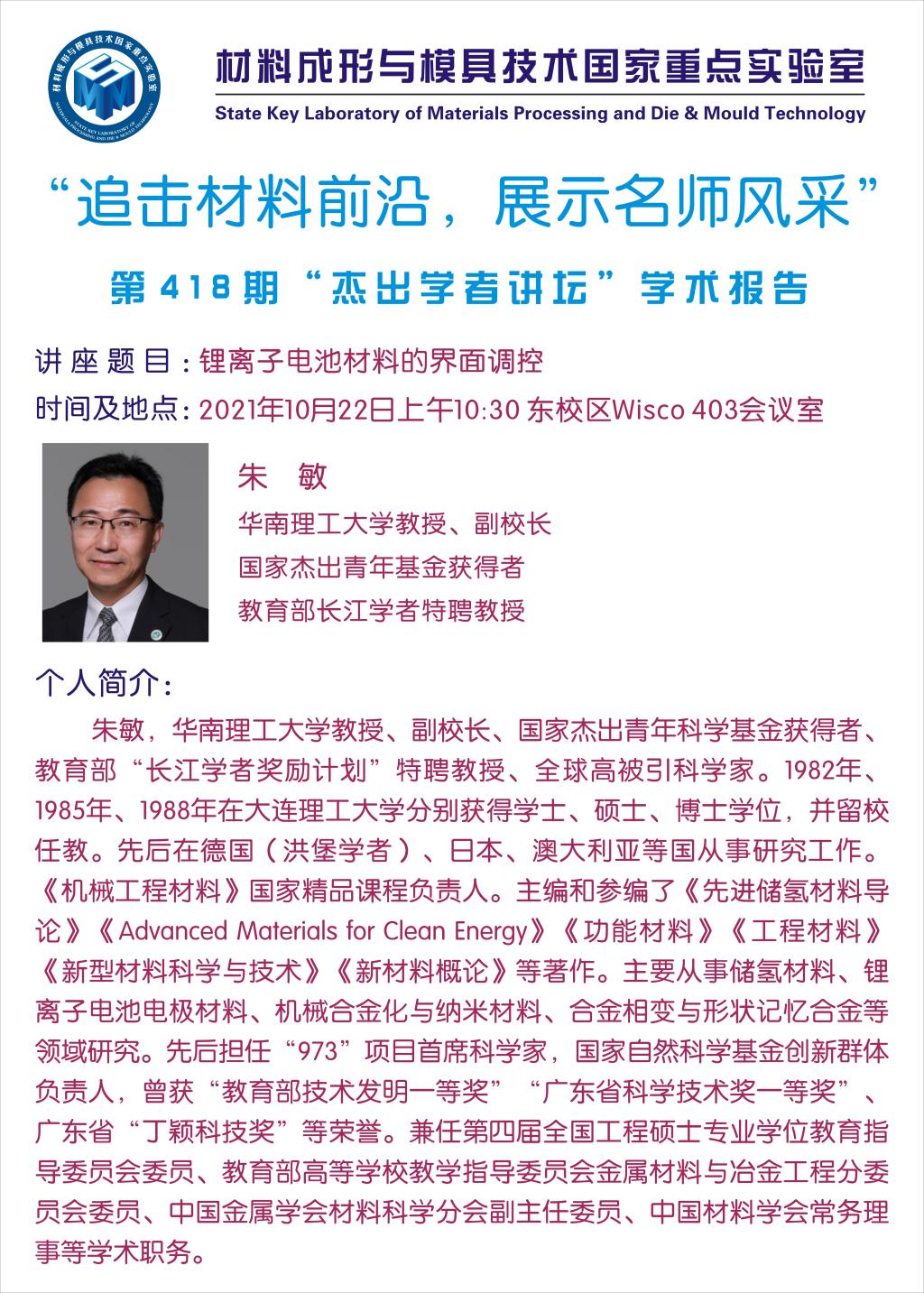 2021年10月22日"杰出学者”讲坛:锂离子电池材料的界面调控