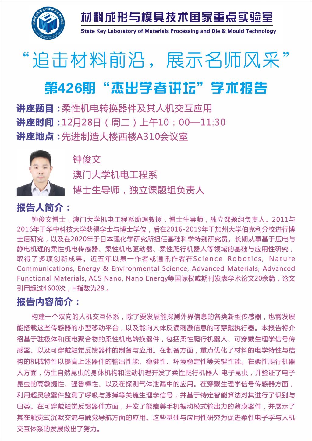 2021年12月28日"杰出学者”讲坛:柔性机电转换器件及其人机交互应用