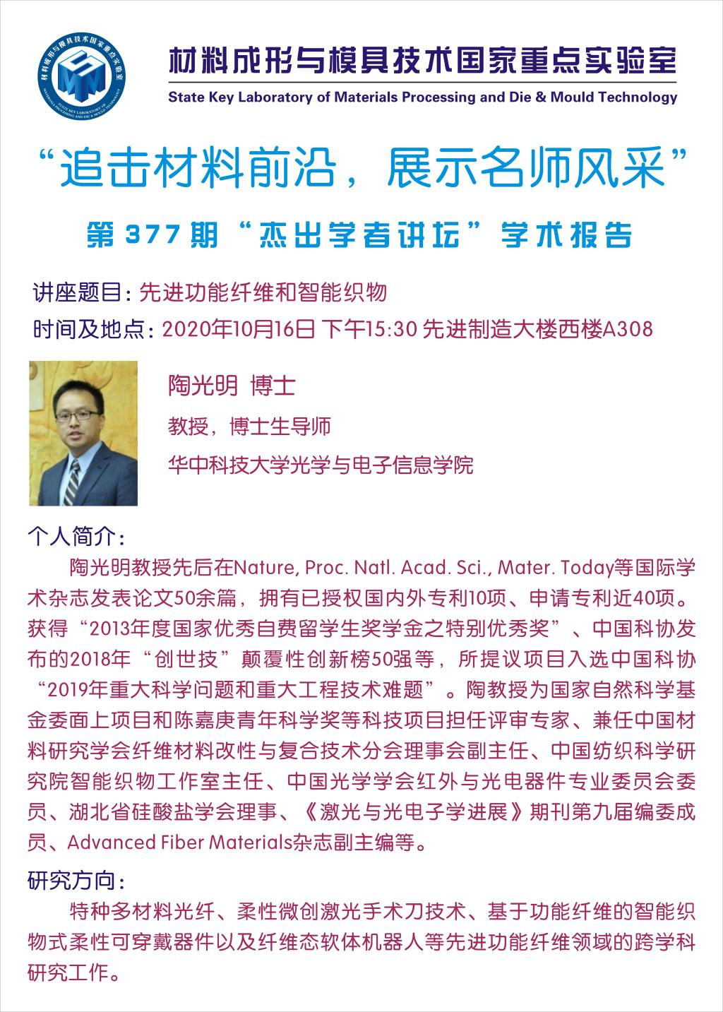 第377期杰出学者讲坛——98堂 教授陶光明