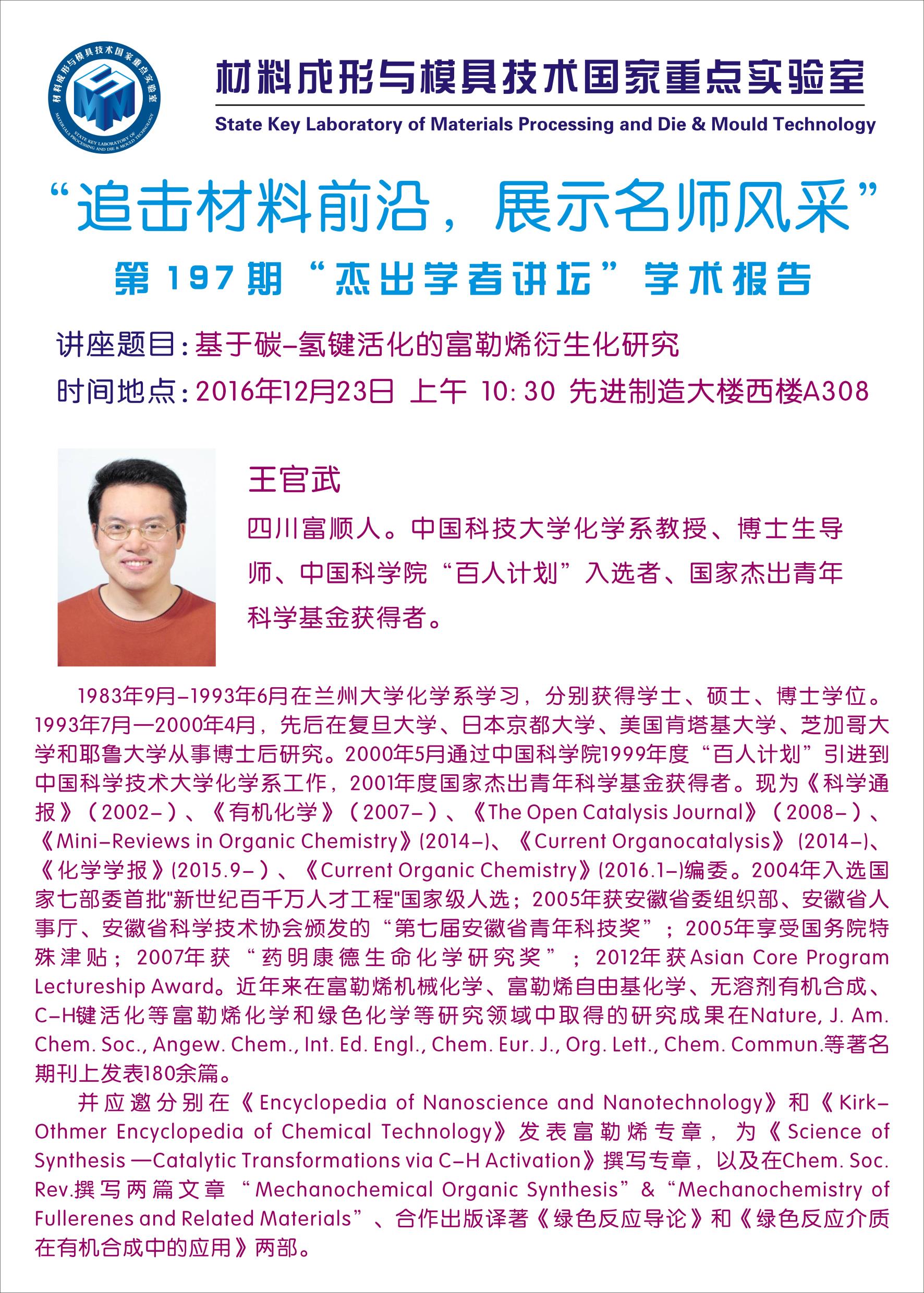 【2016年12月23日】第197期“杰出学者讲坛”学术报…