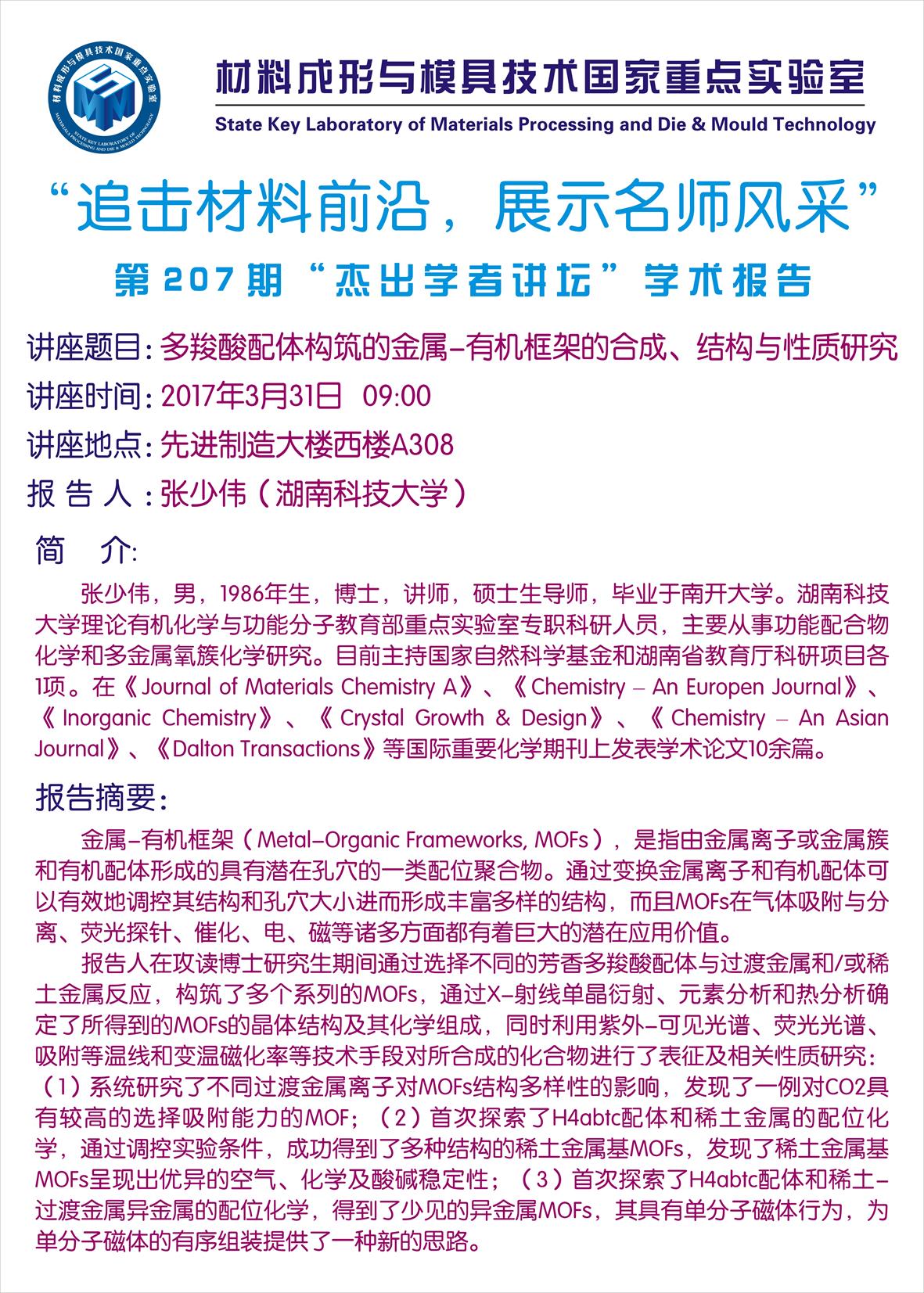 【2017年03月15日】第203期“杰出学者讲坛”学术报…